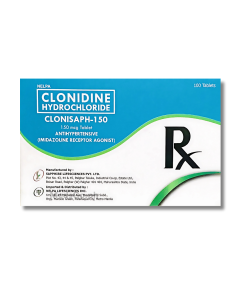 CLONISAPH Clonidine 150mcg is used for the management of high blood pressure, also known as hypertension, by acting on certain receptors in the brain to reduce sympathetic nervous system signals. This action helps to relax and widen the blood vessels, resulting in a decrease in pressure and heart rate. It is also utilized for the prevention of certain types of recurrent headaches, such as vascular migraines. Furthermore, this preparation has found use in alleviating severe hot flashes and sweats associated with menopause.