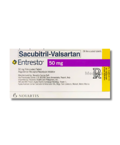 ENTRESTO Sacubitril - Valsartan 50mg is used for the treatment of symptomatic chronic heart failure in adult patients with reduced ejection fraction to reduce the risk of cardiovascular death and heart failure hospitalization. It is also indicated for the treatment of symptomatic heart failure in pediatric patients aged 1 year and older. This combination medication works by enhancing the protective neurohormonal systems of the heart while simultaneously inhibiting the harmful effects of the overactive renin-angiotensin-aldosterone system.