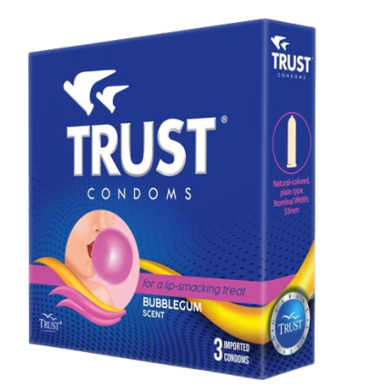 TRUST Condoms Bubblegum Scent is used for the prevention of unintended pregnancy and as a highly effective barrier method to reduce the risk of transmitting or contracting sexually transmitted infections (STIs), including HIV/AIDS. These lubricated latex barriers provide a reliable physical defense during sexual activity. The added bubblegum scent enhances the user experience while maintaining the structural integrity required for maximum safety and protection during intimate use.
