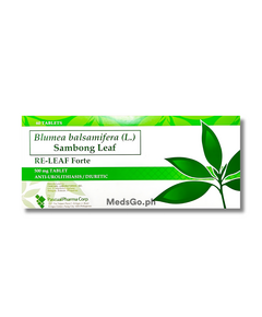 RE-LEAF FORTE Sambong Leaf is used for its dual function as a natural diuretic and a remedy for urinary tract stones in individuals with normal kidney function. It helps in the dissolution or prevention of stones by assisting in the increased passage of urine. Additionally, it is indicated for the management of excess fluid retention and swelling, commonly associated with mild to moderate congestive heart issues. This action promotes the excretion of excess fluids from the body.
