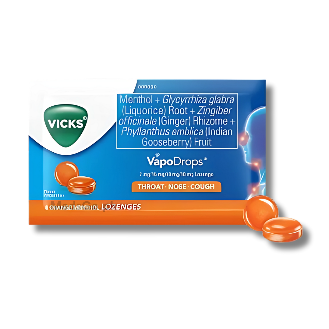 Vicks VapoDrop Lozenges relieves sore throat, cough, & blocked nose.