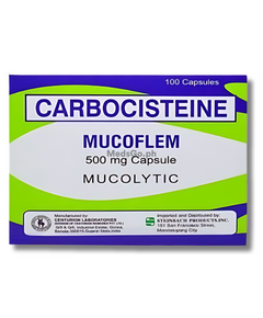 MUCOFLEM Carbocisteine 500mg is used for the symptomatic relief of cough that is accompanied by thick, sticky, or excessive amounts of phlegm and mucus. It works as a mucolytic agent, actively reducing the viscosity and stickiness of the mucus in the respiratory passages, making it easier to cough up. This product is beneficial in managing respiratory conditions such as chronic bronchitis, common cold, and flu where mucus accumulation is a problem. By clearing the airways, it promotes easier breathing and provides comfort.