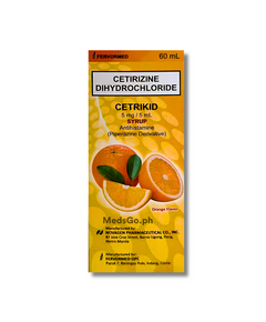 CETRIKID Cetirizine Syrup for Kids is used for symptomatic relief of allergic rhinitis (seasonal/perennial), chronic urticaria, and other allergic skin conditions. It effectively reduces itching, sneezing, runny nose, and watery eyes associated with allergies in children.