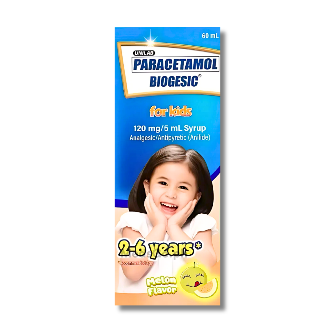 Ang Biogesic Paracetamol 120mg / 5ml ay ginagamit upang mapawi ang banayad hanggang katamtamang sakit tulad ng sakit ng ulo, migraine, pananakit ng ugat, sakit ng ngipin, sakit sa lalamunan, sakit sa puson, at pangkalahatang sakit. Nakakatulong din itong mapawi ang mga sintomas ng sipon at trangkaso at mabisa sa pagpapababa ng lagnat.