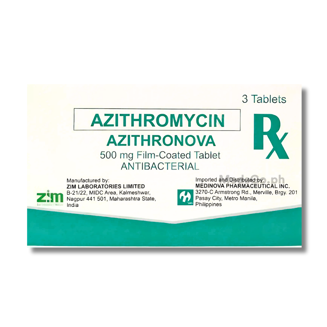 AZITHRONOVA Azithromycin 500mg is used for treating bacterial infections including respiratory tract infections, skin and soft tissue infections, and sexually transmitted diseases. It is effective against community-acquired pneumonia, otitis media, and pharyngitis.