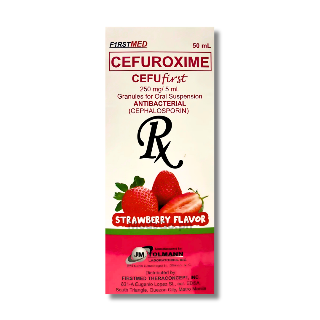 CEFUFIRST Cefuroxime 250mg / 5mL Suspension is used for the treatment of bacterial infections in various parts of the body. It is effective against respiratory tract infections such as tonsillitis, pharyngitis, and acute bronchitis. This medication is also used for ear infections, urinary tract infections, and skin and soft tissue infections.