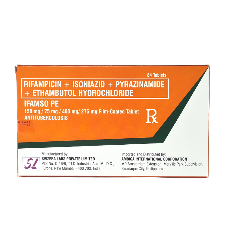 IFAMSO PE Rifampicin / Isoniazid / Pyrazinamide / Ethambutol is used for the treatment of both pulmonary and extra-pulmonary tuberculosis caused by susceptible strains of Mycobacterium tuberculosis. This fixed-dose combination therapy is specifically indicated for the intensive phase of short-course chemotherapy. It helps simplify treatment regimens and improves patient compliance by reducing the number of individual tablets required during the initial phase of TB therapy.