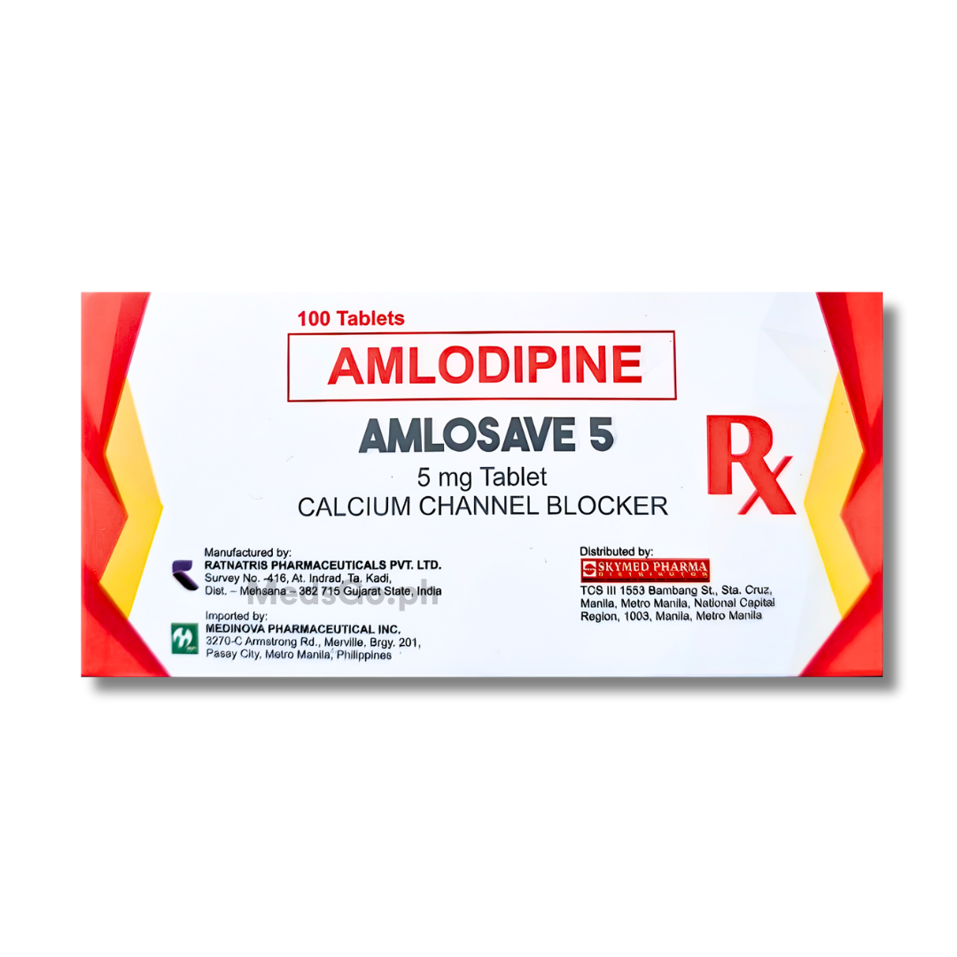 AMLOSAVE 5 Amlodipine 5mg is used for the management of high blood pressure, a condition known as hypertension, to lower the risk of cardiovascular events. It is also prescribed for the prophylaxis of angina pectoris, which is chest pain caused by coronary artery disease. This medication belongs to a group of medicines that work by relaxing and widening the blood vessels, allowing blood to flow more easily and reducing the workload on the heart. It is effective in treating both chronic stable angina and vasospastic angina.