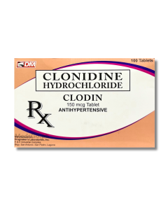 CLODIN Clonidine 150mcg is used for the management of high blood pressure, also known as hypertension, by acting on certain receptors in the brain to reduce sympathetic nervous system signals. This action helps to relax and widen the blood vessels, resulting in a decrease in pressure and heart rate. It is also utilized for the prevention of certain types of recurrent headaches, such as vascular migraines. Furthermore, this preparation has found use in alleviating severe hot flashes and sweats associated with menopause.
