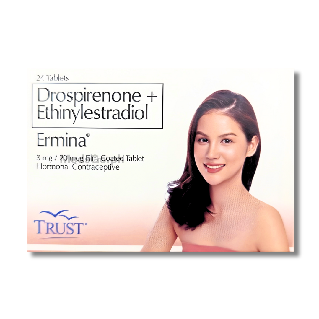 ERMINA Drospirenone / Ethinylestradiol 3mg / 20mcg common side effects include: headache, nausea, breast tenderness, and menstrual irregularities such as spotting or breakthrough bleeding. Some users may also report mood swings, abdominal pain, or changes in body weight. While less frequent, some individuals may experience decreased libido or migraine episodes during the initial cycles of use.