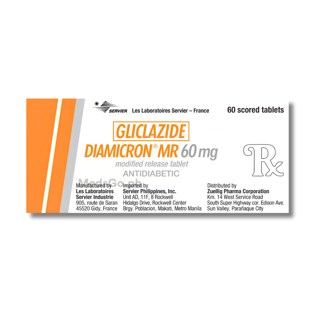 DIAMICRON MR Gliclazide 60mg common side effects include: Hypoglycemia (low blood sugar), which can cause symptoms like headache, sweating, nervousness, and confusion, and is the most common reaction. Gastrointestinal discomforts such as nausea, vomiting, indigestion, diarrhea, or constipation may also occur, usually decreasing if the medicine is taken with food. Less commonly, skin reactions (rashes, redness) or temporary blurring of vision may be experienced, particularly when starting treatment, due to initial fluctuations in blood sugar levels.