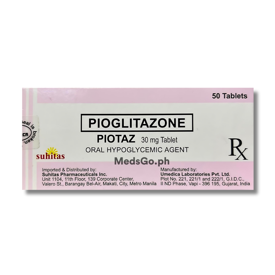 PIOTAZ Pioglitazone 30mg is used for the management of type 2 diabetes mellitus as an adjunct to diet and exercise to improve glycemic control. It helps the body better utilize insulin, thereby lowering blood sugar levels in patients who do not achieve adequate control with other oral antidiabetic agents. This medication can be used as monotherapy or in combination with metformin, sulfonylureas, or insulin to provide a comprehensive approach to diabetes management.