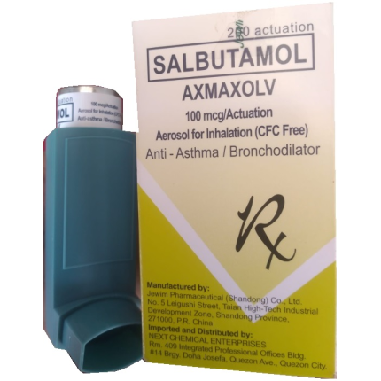 Pharmacist answers to questions about AXMAXOLV Salbutamol 100mcg / act. Aerosol for Inhalation (CFC Free) 200act.