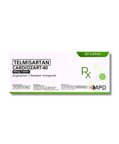 CARDIOZART-40 Telmisartan 40mg is used for the treatment and long-term management of high blood pressure, also known as essential hypertension. It is also indicated to reduce the risk of cardiovascular morbidity and mortality, such as heart attack or stroke, in individuals aged 55 years and older who have established heart problems or diabetes. This medication helps by relaxing and widening blood vessels, which lowers blood pressure and makes it easier for the heart to pump.