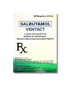 VENTACT Salbutamol 1mg / mL is used for the management and prevention of bronchospasm in patients with reversible obstructive airway diseases such as asthma, chronic bronchitis, and emphysema. It works by relaxing the smooth muscles of the airways, allowing for easier breathing during acute attacks or as maintenance therapy. This solution is specifically designed for inhalation via a nebulizer to ensure rapid delivery of the active ingredient directly to the lungs for prompt relief of wheezing and shortness of breath.