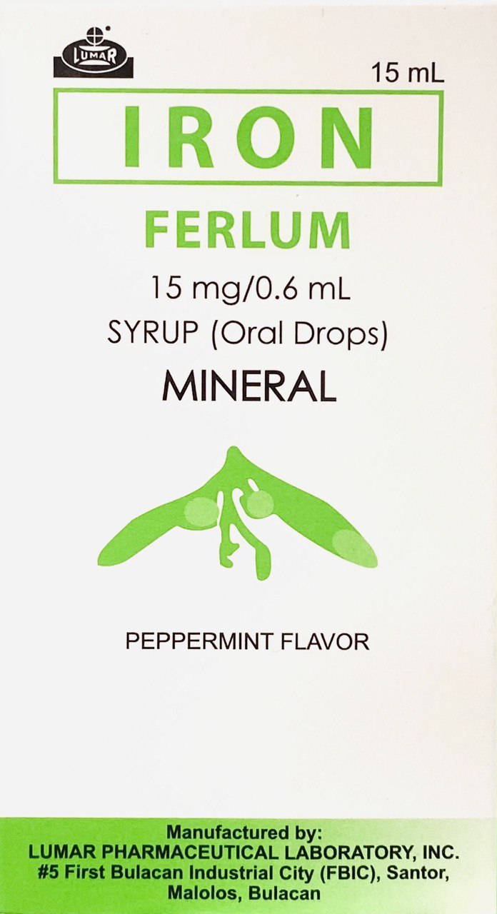 FERLUM Ferrous Sulfate Oral Drops for Baby contains: Ferrous Sulfate 75mg/0.6mL (equivalent to 15mg elemental iron/0.6mL)