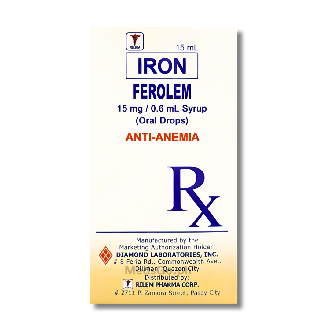 FEROLEM Ferrous Sulfate Oral Drops for Baby contains: Ferrous Sulfate 75mg/0.6mL (equivalent to 15mg elemental Iron/0.6mL)