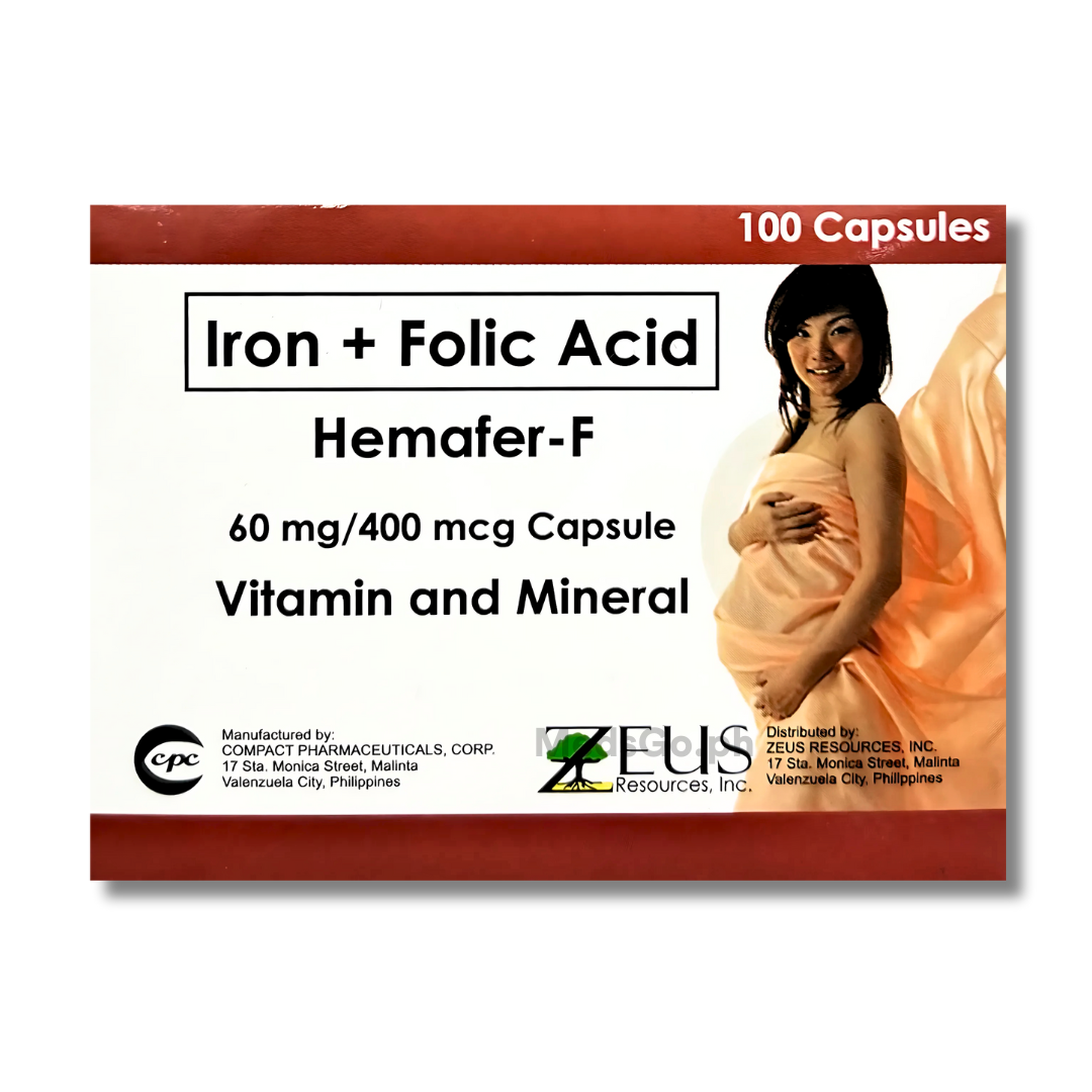 Formulation / Ingredients HEMAFER-F Iron + Folic Acid contains: Iron 60mg + Folic Acid 400mcg